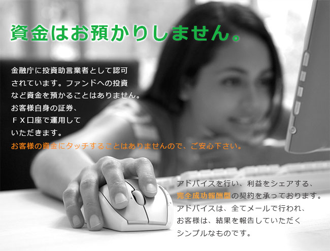 私たちは関東財務局長(金商)第2507号の投資顧問業者です。